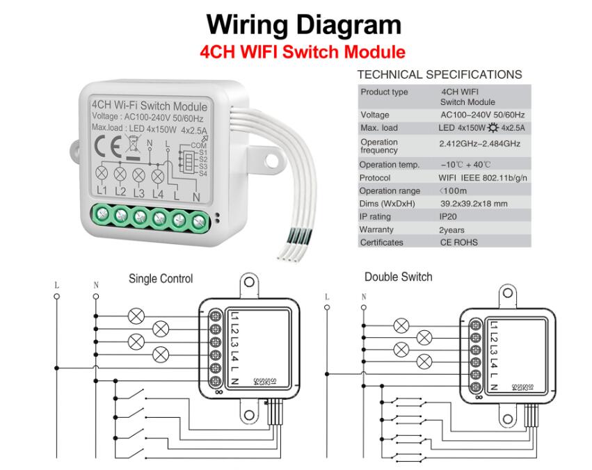 This smart wifi module with mini design suits for US and EU/UK wall switch box well, and easily hide it into your hidden wall switch box of your traditional switch without any influences on your original decoration style to make it smart,giving your devices the ultimate power on/off smart makeover and convert most any compatible products to smart ones.No more worry about its incompatibility restricted by its size to your existing switch box.