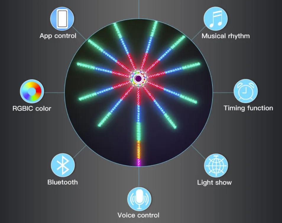 1. Music Sync Party Firework Lights: With a built-in microphone, the brightness and colors change in sync with the rhythm of the sounds around you, creating an electrifying atmosphere.